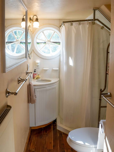 The Twin Peaks Room has twin views of both Mount Shasta and Black Butte, a king bed and a private shower and bath.