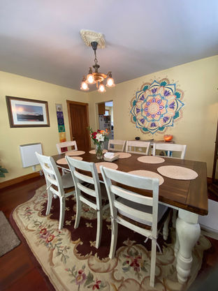 Unwind, watch a movie and play games, puzzles, oracle cards or enjoy the company of friends (old & new) in our comfortable second floor relaxation room, or on it’s spacious deck overlooking the gardens below.
